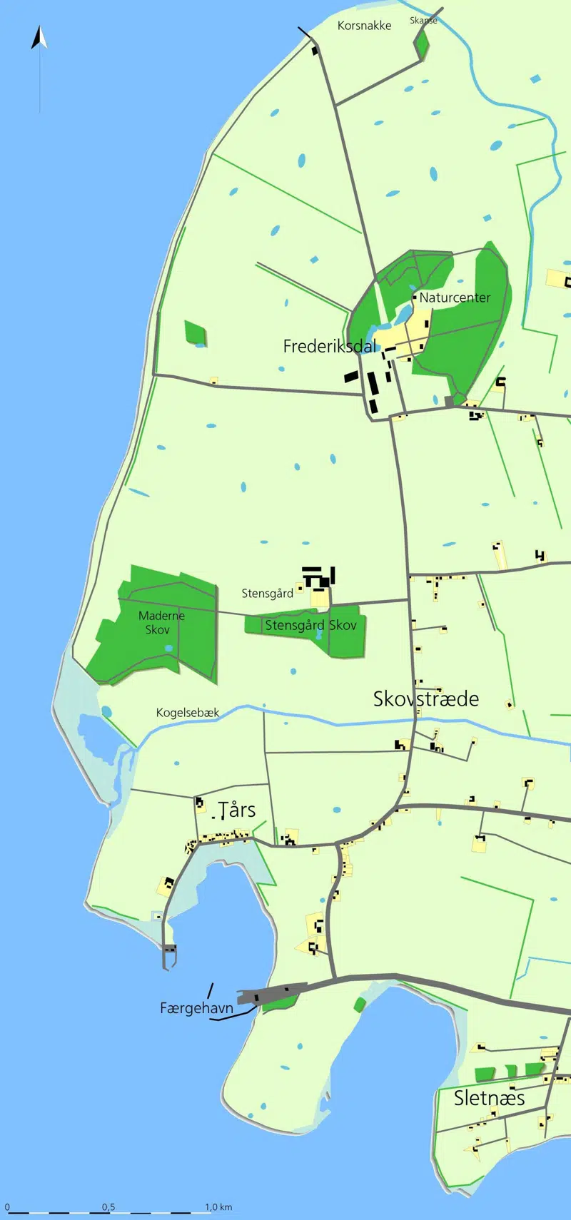 En græsset strandeng i bunden af vigen rummer en interessant strandengsflora og huset yderst inden havnen ligger omgivet af en voldgrav, der stammer fra en gammel skanse. I bunden af vigen er der spor efter et havneanlæg fra 1800-tallets begyndelse, hvor der lå en kanonbådshavn. Rundt omkring og især nord for Tårs ligger mange små vandhuller, hvor naturpleje har medført, at den sjældne løvfrø stortrives. Løvfrøhannerne kan opleves på stille og lune aftener i maj og juni, hvor der kan høres et imponerende kor af hanner, som prøver at få hunnerne til at komme nærmere. Også den grønbrogede tudse, kaldet fløjtetudse kan høres fra strandsøerne nord for Tårs. Skovene, strandengene og de historiske seværdigheder former i det hele taget et spændende landskab, hvor der er mange vandretursmuligheder. Cirka 3 km nord for Tårs ligger Frederiksdal, der omtales andetsteds.